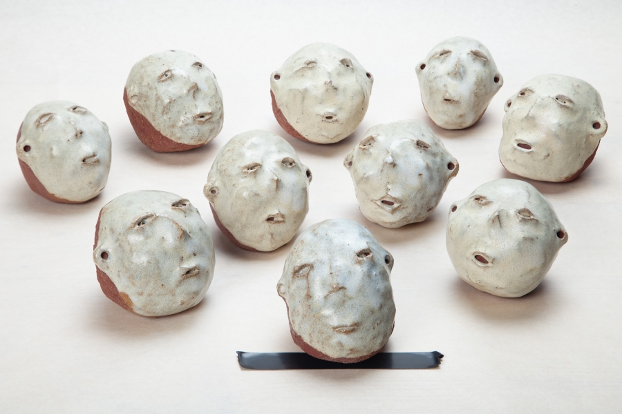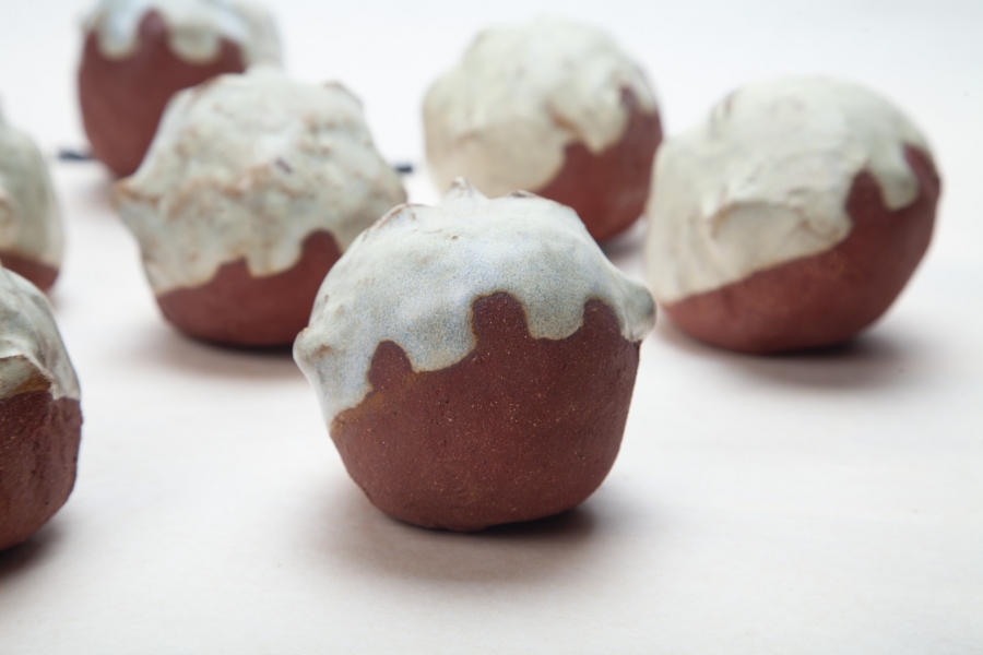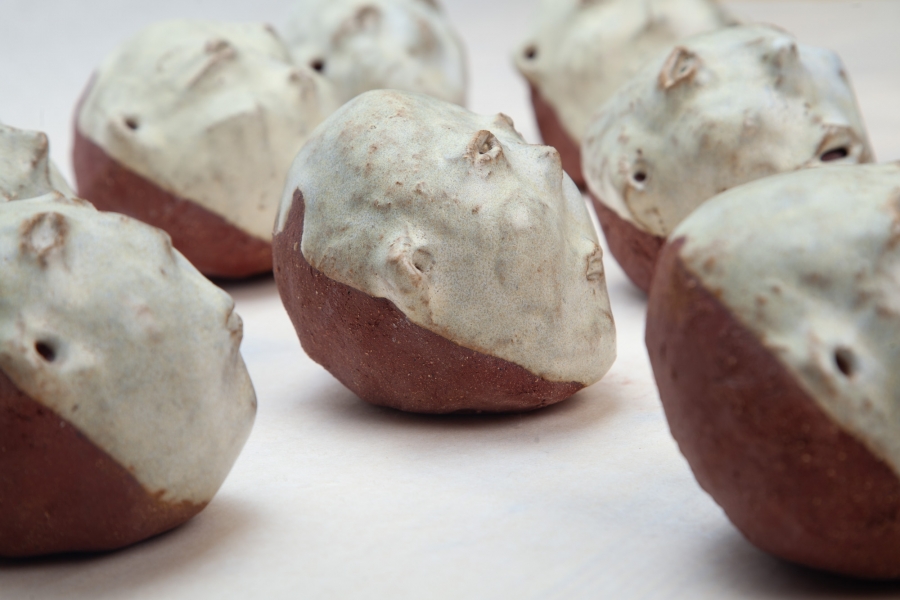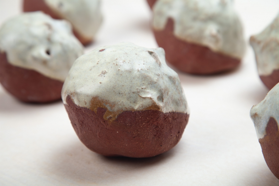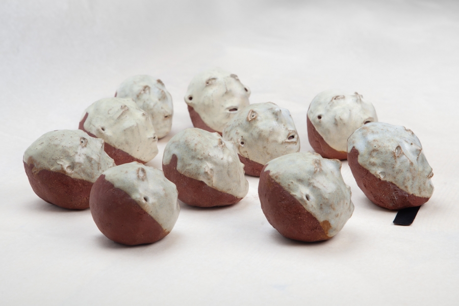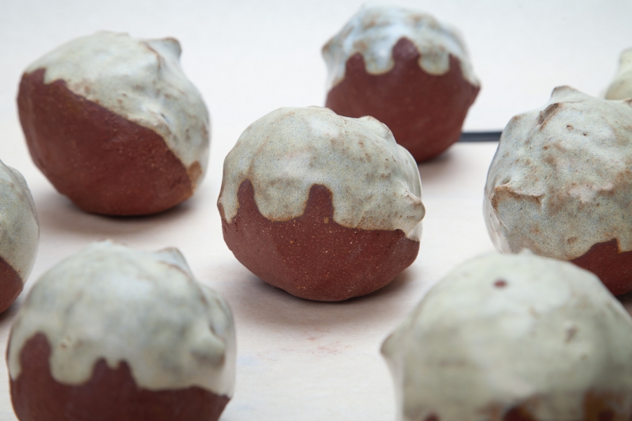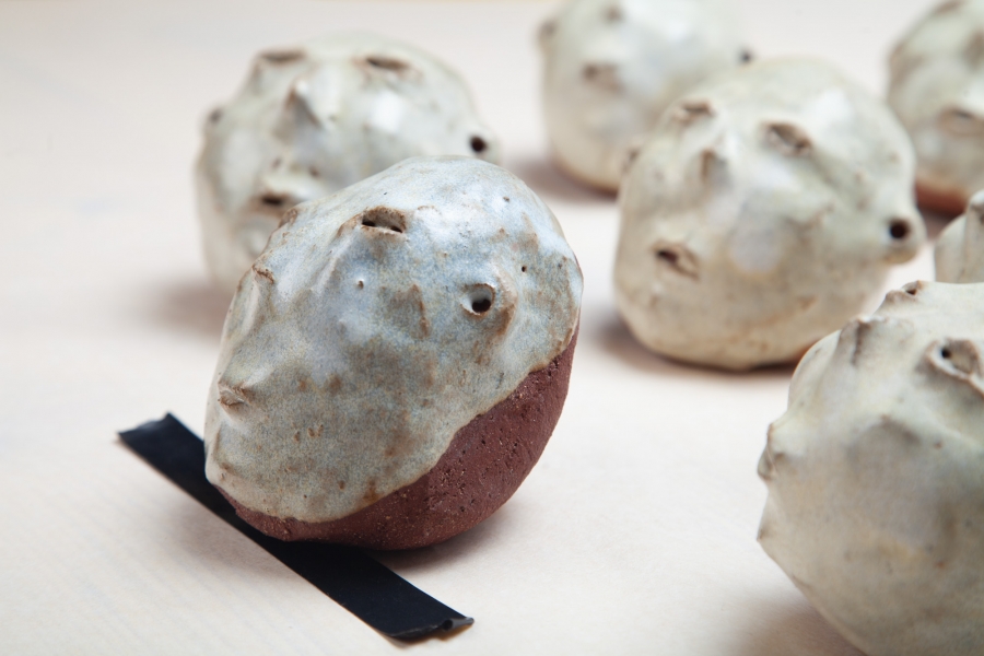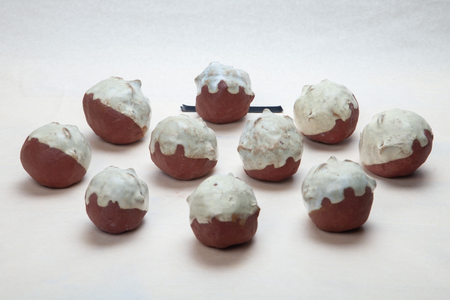 Cerâmica vermelha grés com vidrado feldspático, e fita cola preta.
