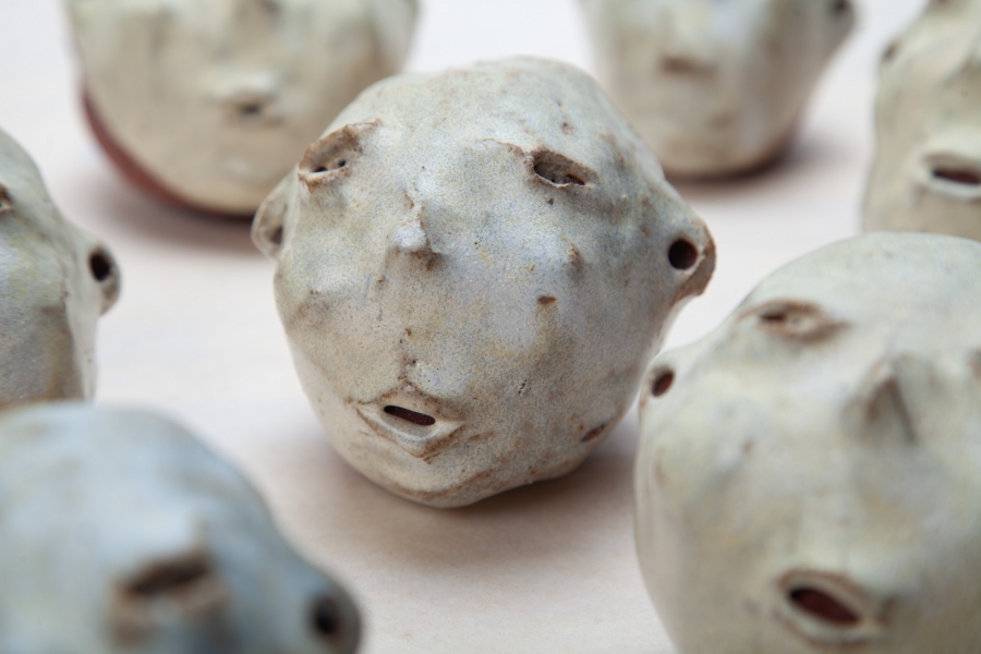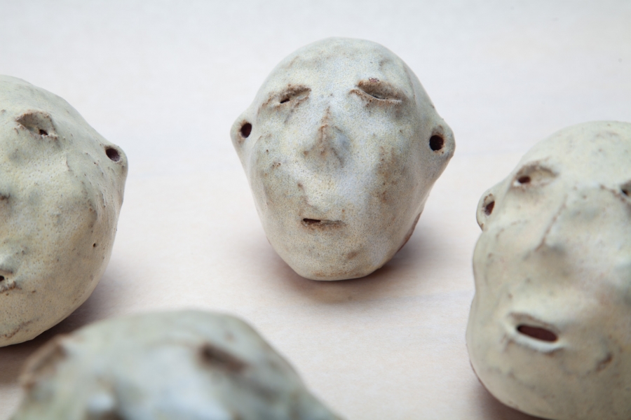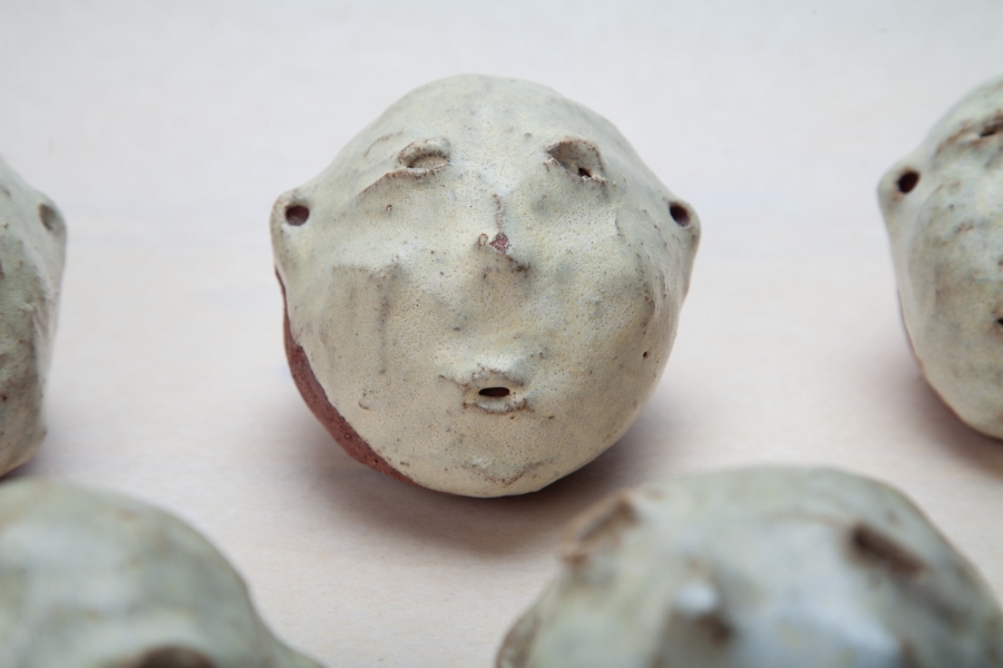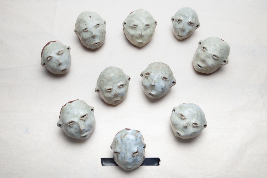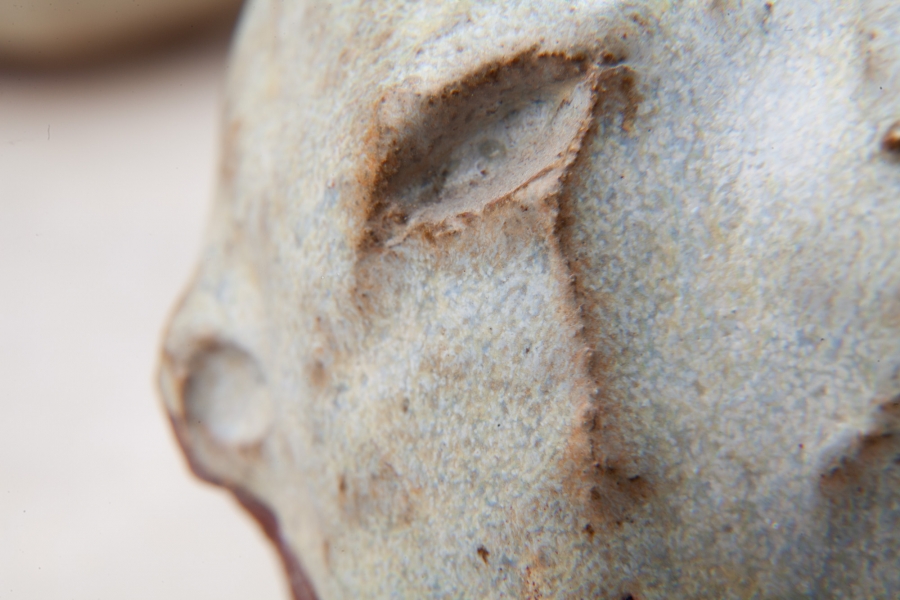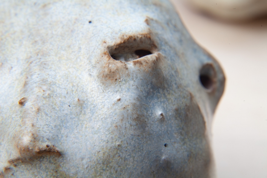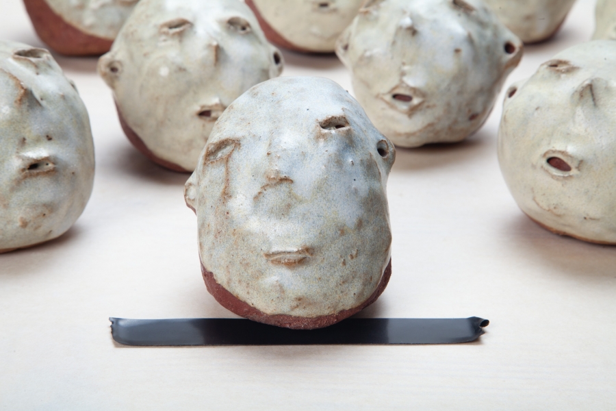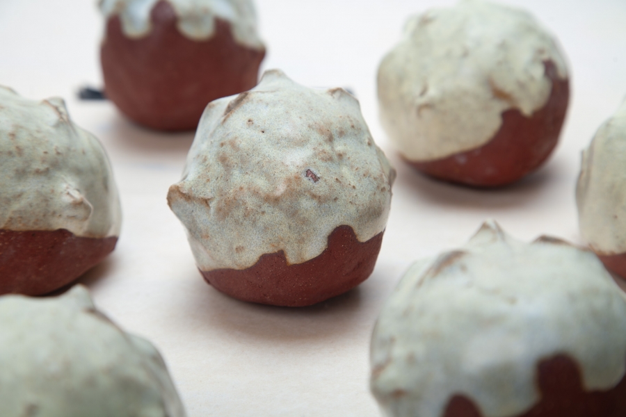 Cerâmica vermelha grés com vidrado feldspático, e fita cola preta.